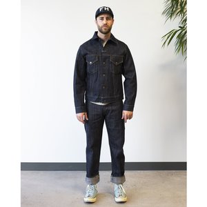 The Type III denim jacket by Sugar Cane is a reproduction of the 1960's era jean jacket, featuring period correct details such as copper buttons and paper patch. Made with 14.25 oz. denim, this jacket features a modern fit that is longer in the body compared to the Type II jacket. The fabric is unsanforized but once-washed, giving you the convenience of a pre-shrunk garment with the aging properties of raw denim. - 14.25 oz. denim - Once washed, minimal shrinkage to be expected - Reproduction of 1960's era denim jacket - Made in Japan - Model is 5'11"/170 lbs. and wears size 38