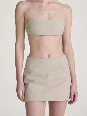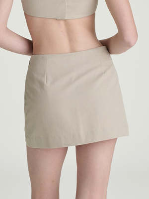 Tactical ripstop for silly little errands. (A-line skort with comfortable structure and full breathable undershorts.) An A-line skort made with cotton ripstop water-repellant fabric. Featuring hidden undershorts in woven cotton. Front and back darts, side zip. Made in Italy.