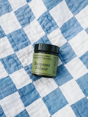 Inspired by hardworking hands, this ultra-rich tallow balm hydrates and soothes dry, rough, and overworked skin. Formulated with a blend of oils and botanical flowers known for their therapeutic properties, Chef & Gardener's Balm helps heal hands naturally. 50 mL jar Sustainably made by Summer Solace.