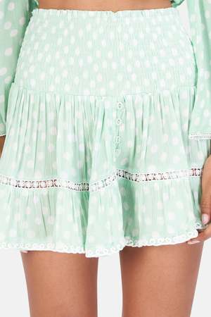 - Small skirt smocked at the waist and buttoned on the front - Dot pattern and embroidered finishes - 100% viscose - Hand wash cold - Imported - Style No. POMPONETTE2 - Color: Almond Sku SSTWSU22-40 Mpn POMPONETTE2 Productcode SSTWSU22-40