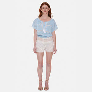 Sunday's iconic short is made of cotton with an original embroidered flower pattern and beautiful lace with an adjustable drawstring to adjust the waist size. You can match it with our Cloe, Ashley, or Olga flower embroidered tops or the basic Sioux. Perfect for a day at the beach club or by the pool! - Optical White - 100% Cotton - Draw string wait band - lace detailing - This One Size short will fit sizes 34-38 (EU) / 4-8 (US) with its elastic band around the waist CARE INSTRUCTIONS: - Wash at 30C and hang to dry - Style #: RAY Mpn RAY Sku SSTWSU23-14