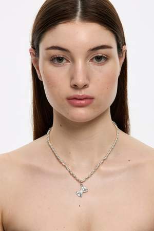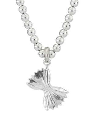 Crafted from 925 sterling silver, the FARFALLE PASTA necklace is a 5mm Sphere Link Chain attached with a uniquely textured shaped pasta pendant. This nickel-free and hypoallergenic pendant is designed in Sydney, Australia. Chain: 46cm 5mm Sphere Link Chain extender 50cm Pendant size: 18 mm Available in one size To ensure your FARFALLE PASTA necklace maintains its beauty, take care not to wear it while bathing, swimming, working out, or sleeping.