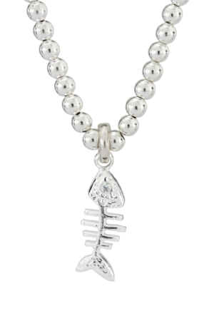 Crafted from 925 sterling silver, the FISH BONE necklace is a 5mm Sphere Link Chain attached with a uniquely textured shaped fish pendant. Set with a variety of CZ stones, this nickel-free and hypoallergenic pendant is designed in Sydney, Australia. Chain: 46cm 5mm Sphere Link Chain extender 50cm Pendant size: 18 mm Stones: White 1.5 mm Available in one size To ensure your FISH BONE necklace maintains its beauty, take care not to wear it while bathing, swimming, working out, or sleeping.
