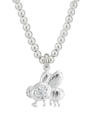 Crafted from 925 sterling silver, the FLY necklace is a 5mm Sphere Link Chain attached with a uniquely textured shaped fly pendant. Set with a variety of CZ stones, this nickel-free and hypoallergenic pendant is designed in Sydney, Australia. Chain: 46cm 5mm Sphere Link Chain extender 50cm Pendant size: 18 mm Stones: White CZ 1.2 mm, White 1.5 mm, White 1.75 mm Available in one size To ensure your FLY necklace maintains its beauty, take care not to wear it while bathing, swimming, working out, or sleeping.