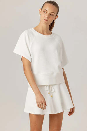 Made from textured crinkle fabric, this swingy tennis skort is designed for easy, on-the-go wear. It features a comfortable ribbed waistband with an adjustable drawcord for a custom fit. Built-in shorts provide a sporty look, while the hem finishes right at most wearers fingertips. Color: Coconut Milk Material: 100% Polyester Care: Machine wash cold, tumble dry low.