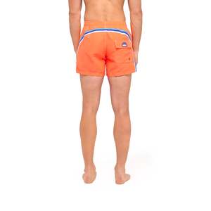 Mid-length board shorts with stretch waist. This is Sundek - Full mesh lining - Back patch pocket with jacquard logo2 patch - Sundek's signature rainbow arching across the back - 14" side seam - 4.5" inseam - Machine wash cold, inside out, separately - Hang dry in the shade - Iron low Description tag These short-length board shorts feature a fixed waistband with a drawstring. Made from the historic nylon taffeta fabric that makes Sundek swim trunks light, quick to dry, and durable with the back featuring the classic three-color Sundek rainbow. Classic fit falls around lower thigh. Custom product false Age group adult Gender male Condition new
