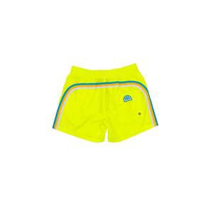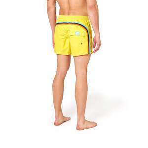 Mid-length board shorts with stretch waist. This is Sundek style number: M505BDTA100 - Full mesh lining - Back patch pocket with jacquard logo2 patch - Sundek's signature rainbow arching across the back - 14" side seam - 4.5" inseam - Machine wash cold, inside out, separately - Hang dry in the shade - Iron low