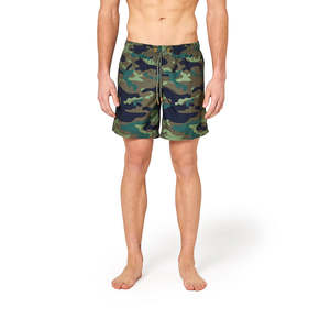 Mid-length board shorts with stretch waist. This is Sundek style number: M505BDP0153 - Full mesh lining - Back patch pocket with jacquard logo2 patch - Sundek's signature rainbow arching across the back - 15" side seam - 7" inseam - Machine wash cold, inside out, separately - Hang dry in the shade - Iron low