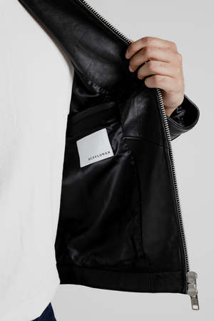 Sunflower Short Leather Jacket - Black Introducing our Sunflower Short Leather Jacket - a classic fit with a two-way silver zip closing, perfect for adding a touch of timeless style to any outfit.