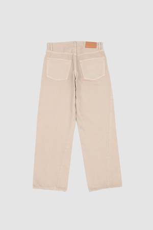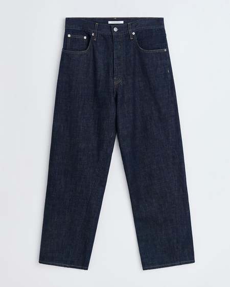 Wide fit jeans with twisted seams in an overdyed blue denim.