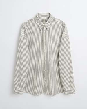 A considered split-collar silhouette with subtly dropped shoulders, rendered in yarn-dyed cotton poplin for refined texture and durability. Finished with genuine mother-of-pearl buttons, a functional chest pocket, and curved hema foundational piece that rewards repeated wear. - 100% cotton - Made in Portugal