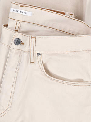 Men > Clothing > Jeans Sunflower straight jeans in cream cotton denim with a mid waist, belt loops, five-pocket design, button and zip closure, leather logo2 patch on the back, and a straight leg. Composition: 100% Cotton.