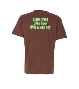 Men > Clothing > Topwear > T-Shirts Sunflower brown Easy Hours t-shirt with crewneck, logo2 print on the front, and print on the back. Composition: 100% Cotton.