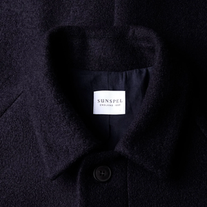 A classic, beautifully constructed car coat crafted from luxuriously soft Italian boiled wool jersey. Fully lined, it features minimal detailing for a timeless yet contemporary feel that emphasises the quality of the fabric and craftsmanship. The fit is regular with a long length and comfortable saddle shoulders, overarm seams and an extra-long vent at the back. Hidden button closure and side welt pockets complete this elegant and luxurious winter piece. Made in Portugal Product Code: MCOA7332-BUAA