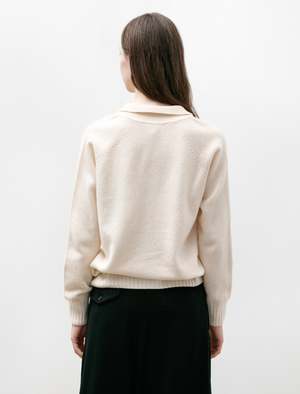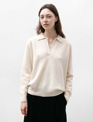 A relaxed sweater with an elegant, refined look. Crafted in Scotland from the finest super-geelong lambswool, it has been washed in natural spring water for an extra-soft hand. It features long sleeves, ribbed detailing at the cuffs and bottom hem, and a tasteful spread collar with a deep neckline. It looks great worn over just about anything, easily taking you from the office to whatevers next.