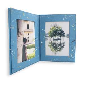 Fair Trade, artisan-made double photo frames crafted from upcycled, tree-free cotton paper. Designed to hold 4" 6" and 5" 7" photos, this set of five handmade frames features assorted colors and a natural confetti-like textureperfect for eco-friendly home dcor, desks, shelves, and thoughtful gifting. Made from recycled, unbleached cotton scrap paper, these tabletop photo frames bring sustainability and craftsmanship together. Their lightweight yet sturdy design allows them to stand vertically, adding a warm, handcrafted touch to mantels, nightstands, and workspaces while supporting rural artisan communities in Northern India. A meaningful gift for birthdays, housewarmings, Mothers Day, Thanksgiving, Christmas, and other special occasions. Why youll love it: Handmade from upcycled, tree-free cotton paper Fair Trade and artisan-made in India Natural confetti-like texture with assorted colors Holds 4" 6" and 5" 7" photos Vertical tabletop design for easy display Lightweight, sturdy, and eco-friendly Set of 5 ideal for gifting or gallery-style displays Sustainable alternative to wood or plastic frames How its made: Artisans transform discarded cotton fabric scraps into paper by blending them with water to form a pulp. The mixture is poured onto mesh screens to create sheets, pressed to remove excess water, and air-dried. Once dry, the sheets are flattened and shaped into frames. Natural variations in color and texture emerge through this handmade process, making each frame unique. Material & care: Upcycled, tree-free recycled cotton scrap paper Assorted colors Set of 5 frames Tabletop standing design Fits 4" 6" and 5" 7" photos Handmade in India. Due to the handmade nature of this product and variations in screen display, slight differences in color, texture, or craftsmanship may occur. These are not defects but a hallmark of authentic artisan-made goods.