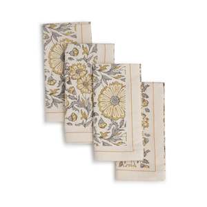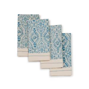 Elevate your table with these hand block printed napkins, where artistry meets sustainability. Each napkin is hand-stamped by skilled artisans using a centuries-old block printing technique. Intricate motifs are carved into wooden blocks, dipped in low-impact dyes, and carefully pressed onto premium Kora cottonunprocessed, unbleached, and rich in natural texture. Kora cotton is left untouched by chemical bleaches, resulting in a natural off-white color and texture that reflects an eco-conscious process. Enhanced with sophisticated embroidery, each napkin is a reusable, planet-friendly alternative to disposable paper napkins. Crafted by traditional artisans who migrated to the city in search of better livelihoods, these napkins support their families and help preserve the cultural legacy of hand block printing. Features: Size: 18" x 18" 100% Kora Cotton Hand block printed with low-impact dyes Embroidered details Reusable & machine washable Fair Trade product Eco-minded alternative to single-use napkins Ideal for everyday use, gifting, or special occasions