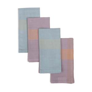 These two-tone handwoven cotton napkins are crafted by indigenous women artisans from Eastern India on bamboo looms. Each napkin combines two colors in intricate patterns, making every piece unique. Soft, absorbent, and durable, they bring elegance and sustainability to everyday meals or special occasions. Set of four. Fair Trade. Made with low-impact dyes. Size: 16"x16". Material: 100% cotton. Design: Two-tone patterns woven from warp and weft threads. Technique: Handwoven on bamboo looms. Care: Machine wash cold, delicate cycle; tumble dry low. Slight variations in color or pattern may occur due to the handmade nature of these napkins.
