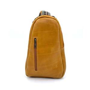 This crossbody backpack offers a blend of practical storage and refined style. Crafted from vegetable-tanned leather, it is designed to develop a rich patina over time. The bag provides ample space for daily necessities while maintaining a lightweight feel. An exterior zippered pocket offers secure and accessible storage for frequently used items, and an interior open pocket aids in keeping belongings organized. The adjustable and removable wool strap ensures comfortable wear. Made from durable vegetable-tanned leather that ages gracefully. Features an external zippered pocket for quick access to essentials and an internal open pocket for organized storage. Dimensions: 10.5" height x 7" width; strap is adjustable and removable. Product ID: 100326.