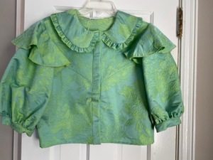 NWT Suzanne Rae Puff Sleeve Jacquard Top Green - 42. A puff-sleeve top, with buttons and a teeny amount of stretch in this incredible mint-green, floral jacquard. It's a blouse, it's a jacket, it's very special. Size 42, like a 6/M.