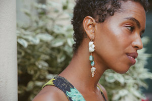 Inspired by a romantic trip to the north of Spain, this piece evokes the nostalgia of the windy, rocky beaches of Cadaqus. Agate, quartz, shell, jasper on 14K gold-filled post. 3.75 inches long. Made in New York. All SVNR earrings are sold individually, unless otherwise indicated. (If youd like two matching earrings, please choose PAIR from the drop-down menu below.) Our earrings are meant to be mixed and matched with each other, or with earrings you already own. Most of our materials are one-of-a-kind, so the individual components of your earring may vary slightly in size and shape. Crafted from found, re-used, up-cycled, and natural materials, due to the handmade nature, subtle variations in color and shape make each piece unique.