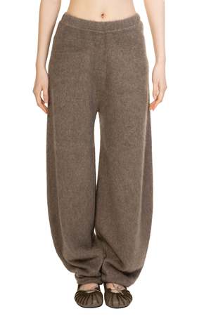 Swaying/knit Yak Fleece Trousers in Grey Brown. These trousers feature an elasticated waist and a slightly curved leg for comfort and ease of movement. Crafted from soft, textural yak fleece fabric, they offer warmth and a luxurious hand feel. Colour: Grey Brown. Composition: Yak fleece.