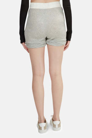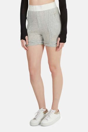 - Color: Heather Grey - Prominent seam detail - Slant hip pockets - Elasticated waist - 10" rise 3" inseam - 96% Tencel 4% Spandex - Made in Vietnam - Machine wash cold * Model is 5'9 wearing a size S Designer Alexander Wang