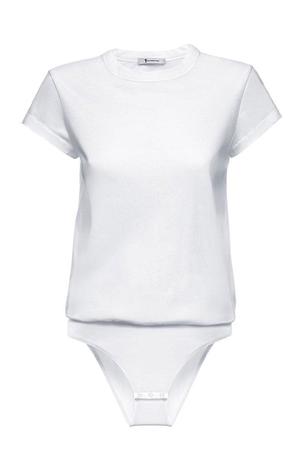 Short sleeve tee body suit with bottom button snap closure. Crew neck. Made with 100% Cotton. Contrast made with 95% Modal, 5% Elastane. * PLEASE NOTE THERE ARE NO RETURNS / EXCHANGES ON THIS ITEM