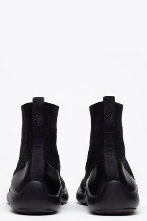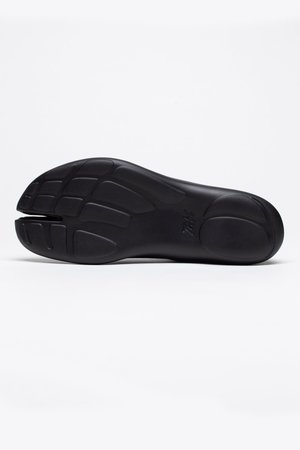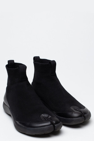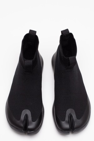 Tabi shoes feature a split between the big toe and the rest of the toes to promote balance and stability. Tabi hightop features comfortable textile upper with rubberised logo2 on the heel. A free pair of Tabi socks are included in the shoe box. Colour: Black. Composition: Tencel Flyknit/TPU upper. Injection EVA outsole.