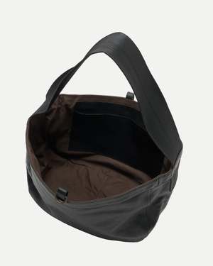 The Lot.004 Newsboy Bag by Taiga Takahashi is crafted from 100% horse leather. The symbolic, intricate stitching on the shoulder handle is faithfully revived, and the horsehide is sourced from raw hides made in Poland and vegetable-tanned in Italy. Rust-finished iron parts complement the material with a distinctive presence. Made in Spain. Style No. TTCORE004 BLACK.