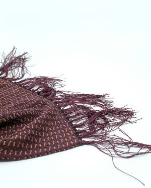 The LOT.015 Bordeaux Silk Stole is based on a silk jacquard stole likely from the 1920s. The stole is designed with a narrower width to propose a layered style under a jacket. The scarf features manually attached fringes made of original twist thread. Silk type: Ties + Scarves.