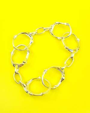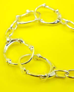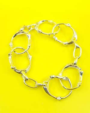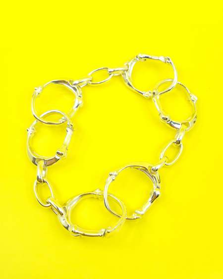 Fully adjustable and customizable with the triple carabiner format that can be separated into 3 different pieces. The bracelet has bone-shaped detailing with a subtle engraved logo2. Made by End Custom Jewelers for TheSoloist in .925 Silver. One Size.