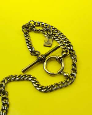 This Dark Silver Singles Albert Chain features a refined single-chain design crafted from durable brass for long-lasting wear. Its classic spring ring closure ensures secure fastening, making it a reliable choice for both everyday use and formal occasions. The dark silver finish adds a timeless, sophisticated touch to your ensemble. Brass One size only