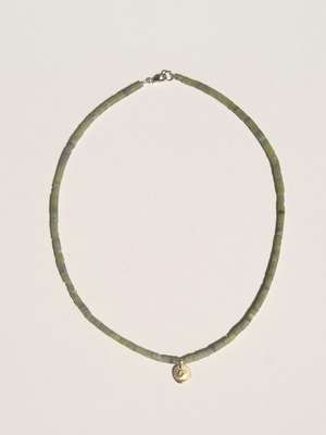 Enso is a sacred symbol in zen buddhism meaning circle or togetherness. A small talisman with a golden charm on jade serpantine beads.
