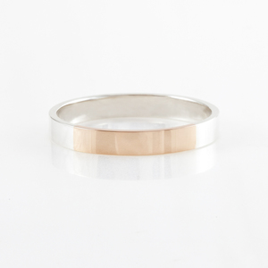 Light flat band with a high polish finish that is divided into 25% 14k gold (yellow or rose) and 75% silver or 14k white gold. The percentage represents progress towards a goal. Band measures 3mm wide x 1mm thick. *Each piece is individually handmade to order - please allow 4-10 days for delivery.