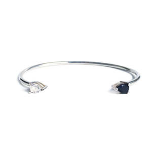 Your stacking game just got that much better with the 'madison' cuff. This sterling silver, minimalistic cuff enhanced with a black onyx, white topaz or both, slides on to your wrist and can be molded to the perfect fit. - Handmade in New York - Sterling silver - Black Onyx and White topaz
