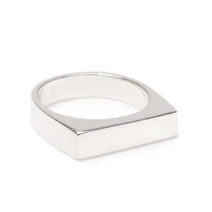This ring is from Tarin Thomas' men's collectsion, it is designed as a thin rectangular shaped signet ring. Made in New York. Available in sterling silver, white bronze, and yellow brass. Available in shiny or satin finishes. *Made to order, please allow 5-10 business days for production.