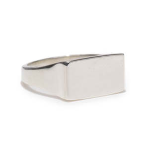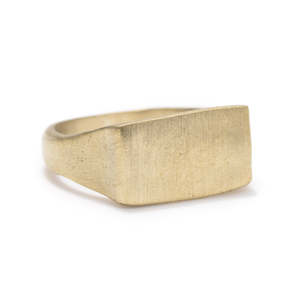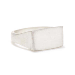 This ring is from the Thomas collectsion, which has been designer as a raw rectangular shaped signet ring. Made in New York. Available in silver, white bronze, and yellow brass. Available in shiny or satin finishes. This item will take 3-5 days to ship out