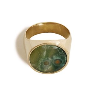 This is our 'everett' ring from our new flat top Thomas collectsion. With it's flat, circular face adorned with ocean jasper, the 'everett' ring combines practicality and edge. This unisex signet ring is a go-to piece with endless wearability. This circular faced ring is set with a, 15x15mm high polished ocean jasper stone. - Handmade in New York. - Ocean Jasper. - No two stones are alike. - Available in sterling silver & yellow brass. Have a question? Ask us!