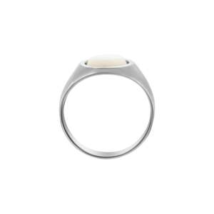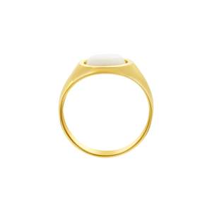 A little old school, a little new school. The artie is the mini to your archie, yet small enough to wear on multiple fingers. We wouldnt be surprised if your Italian uncle with the great suit from Milano would rock onethats what we mean we say old school. - Handmade in New York City - 8x6mm oval white mother of pearl - No two stones are alike - Available in sterling silver and yellow brass