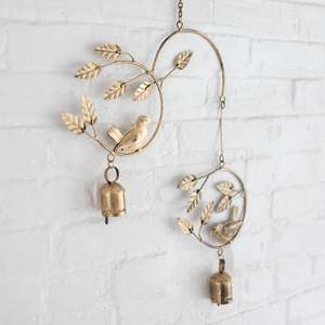 Listen to the soft chime of bells as you relax in your garden or on your porch. The Pyar Bird Iron Wind Chime with antique gold finish is handcrafted from recycled iron and features two birds perched on leafy wreaths connected by a graceful arch. Lovingly crafted by artisans of the Asha Handicrafts Association. Sanskrit for "hope," Asha provides opportunities for artisans in and around Mumbai.