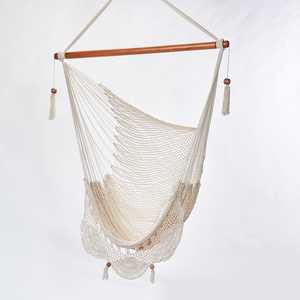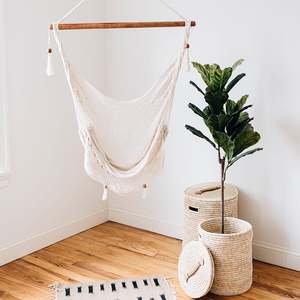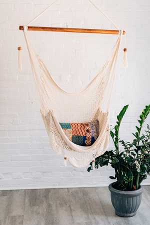 The Summer Day Hammock Chair is ethically handloomed in natural cotton, woven on a simple loom, and tied by hand by artisans of Oyanca Artesania in Nicaragua. The decorative edge adds elegance to this laid-back lounger, perfect for enjoying indoors or outdoors.