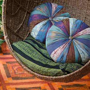 Enhance your yoga or meditation practice with this thoughtfully constructed pillow. Made with a luxurious blend of silk and rayon and filled with 100% natural kapok for soft yet supportive comfort. Its generous size makes it ideal for seated postures, restorative poses, or simply relaxing in mindful stillness. Slight variations in color, shape, and size reflect the artisanal nature of its creation and make every piece unique. Handcrafted in Vietnam.