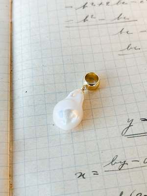 There is beauty in imperfection, and the one-of-a-kind Talia charm exemplifies this. A unique freshwater pearl adds an elegant note to your favorite chain or choker, making for a statement piece you won't find elsewhere. The charm features a 14k gold or rhodium-plated bail with a freshwater pearl measuring approximately 12 mm around by 20 mm long. Best worn on any Thatch chain or choker measuring 5 mm thickness or less. Recommended on the Mini Bowie Rope, Bowie Rope, or the Ora Choker. PRODUCT NOTE: Freshwater pearls vary in texture, shape, and size. These subtle differences make each pearl charm unique.