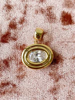 Materials: 14k gold or rhodium plated, cubic zirconia. Charm dimensions: 16 mm x 20.5 mm x 4 mm. Stone dimensions: 8 mm x 12 mm. Weight: 11 g.