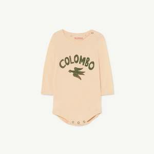 New from the Animals Observatory. Lightweight baby body in off-white cotton. "Colombo" and bird illustration on front. - Baby boy and baby girl onesie - 100% cotton - Color: Beige - Rounded neckline with snap fastening at left shoulder - Long sleeves - Snap fastening at crotch