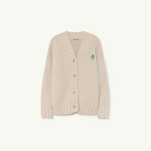 New from the Animals Observatory for Autumn/Winter 2021. Ivory knit v-neck cardigan with small green logo2. - Unisex kid's sweater - 50% acrylic 40% alpaca 10% wool - Color: Raw White - Long sleeves - Dropped shoulders - V-neck - Embroidered logo2 - Center front button closure - Rib finishing at neckline, cuffs and hem