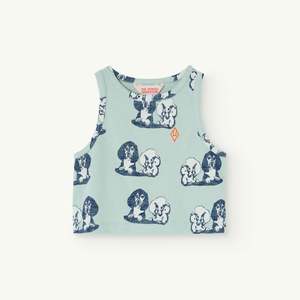 From The Animals Observatory. Kid's tank in washed turquoise oblue with oversized vintage inspired puppy print. - Kid's shirt - Color: Turquoisoe Dog - 100% cotton - Relaxed round neckline - Sleevless - Lowcut armholes - Relaxed fit