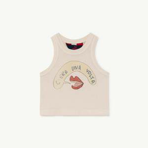 Vintage feel sleeveless tee for baby in a lightweight off-white cotton. Features cheeky mouth illustration. - Unisex baby tank top - 100% cotton - Color: White - Sleeveless - Low cut armholes - Center front graphic - Relaxed fit