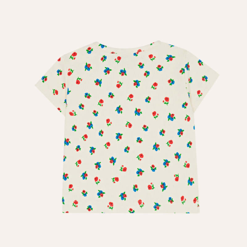DETAILS - Ecru - Intended for a snug fit - Snap closure at the neck for easy on/off - Ribbed construction - 100% Organic Cotton STYLE NOTES - Fits true to size This baby T-shirt features an allover micro flowers graphic print in a snug, comfortable fit. Made in Portugal.